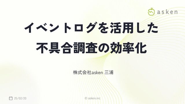 © asken.inc イベントログを活用した 不具合調査の効率化 25/02/20 株式会社asken 三浦