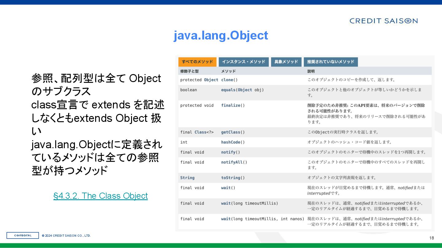 18. 18 © 2024 CREDIT SAISON CO., LTD. CONFIDENTIAL java.lang.Object 参照、配列型は全て