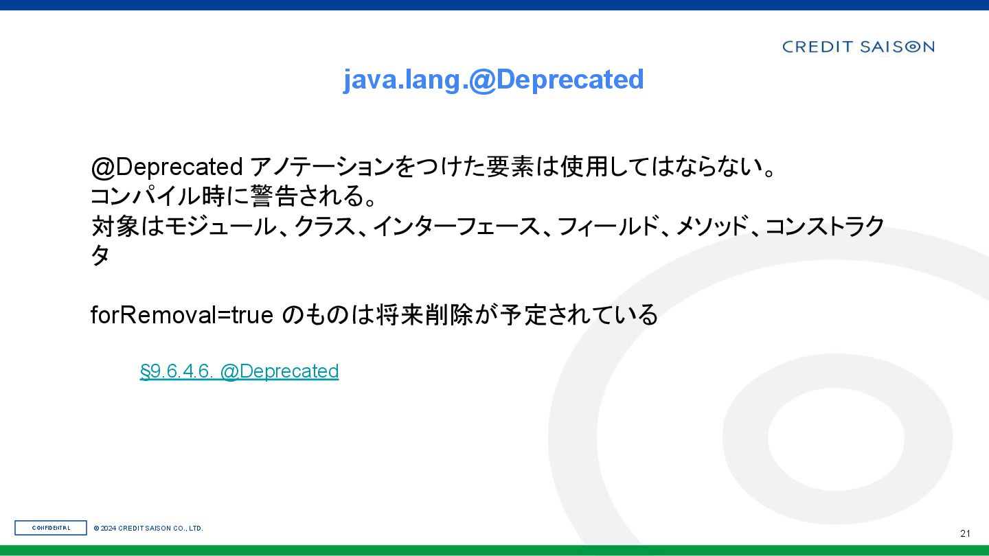 21. 21 © 2024 CREDIT SAISON CO., LTD. CONFIDENTIAL java.lang.@Deprecated @Deprecated