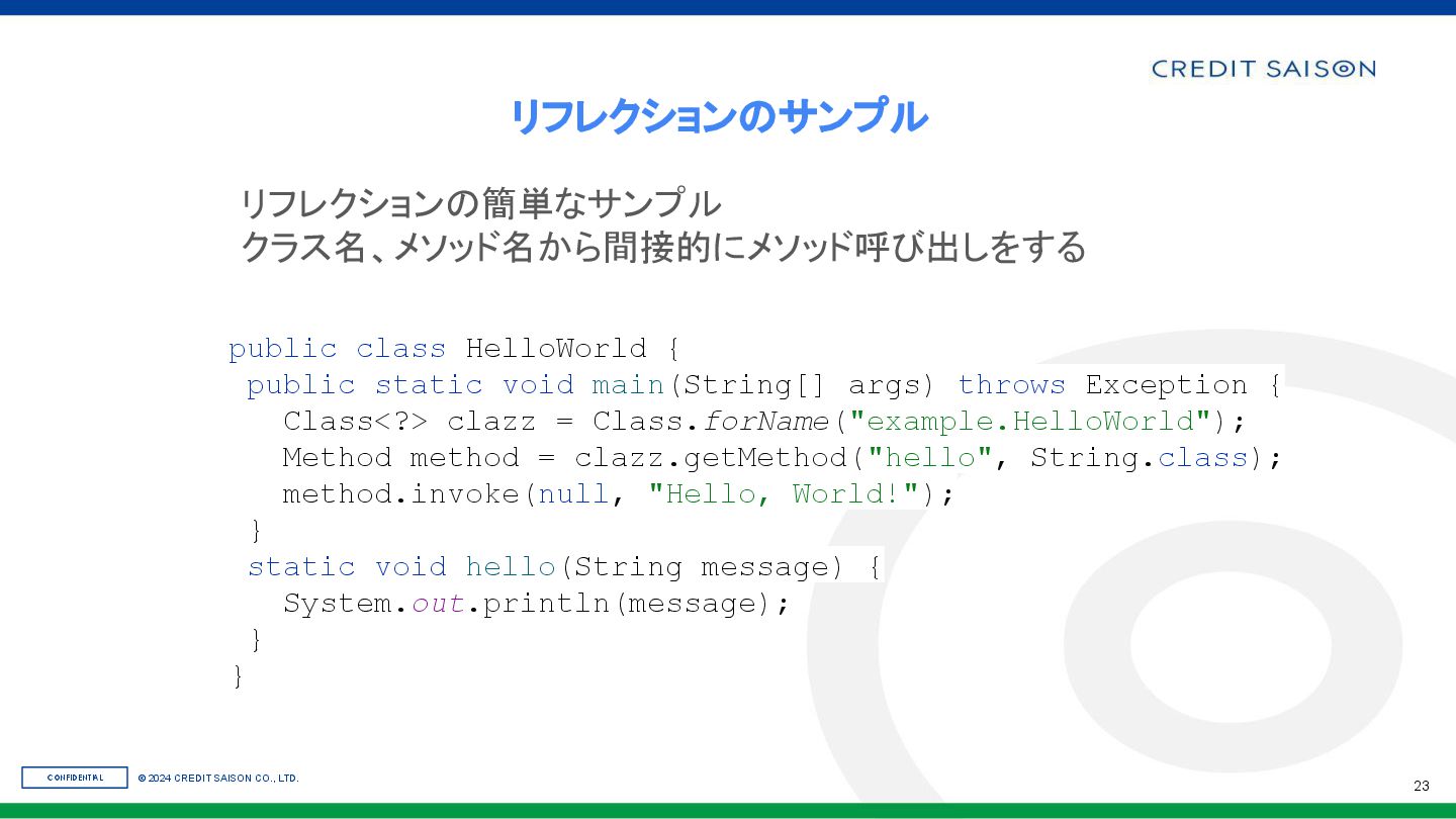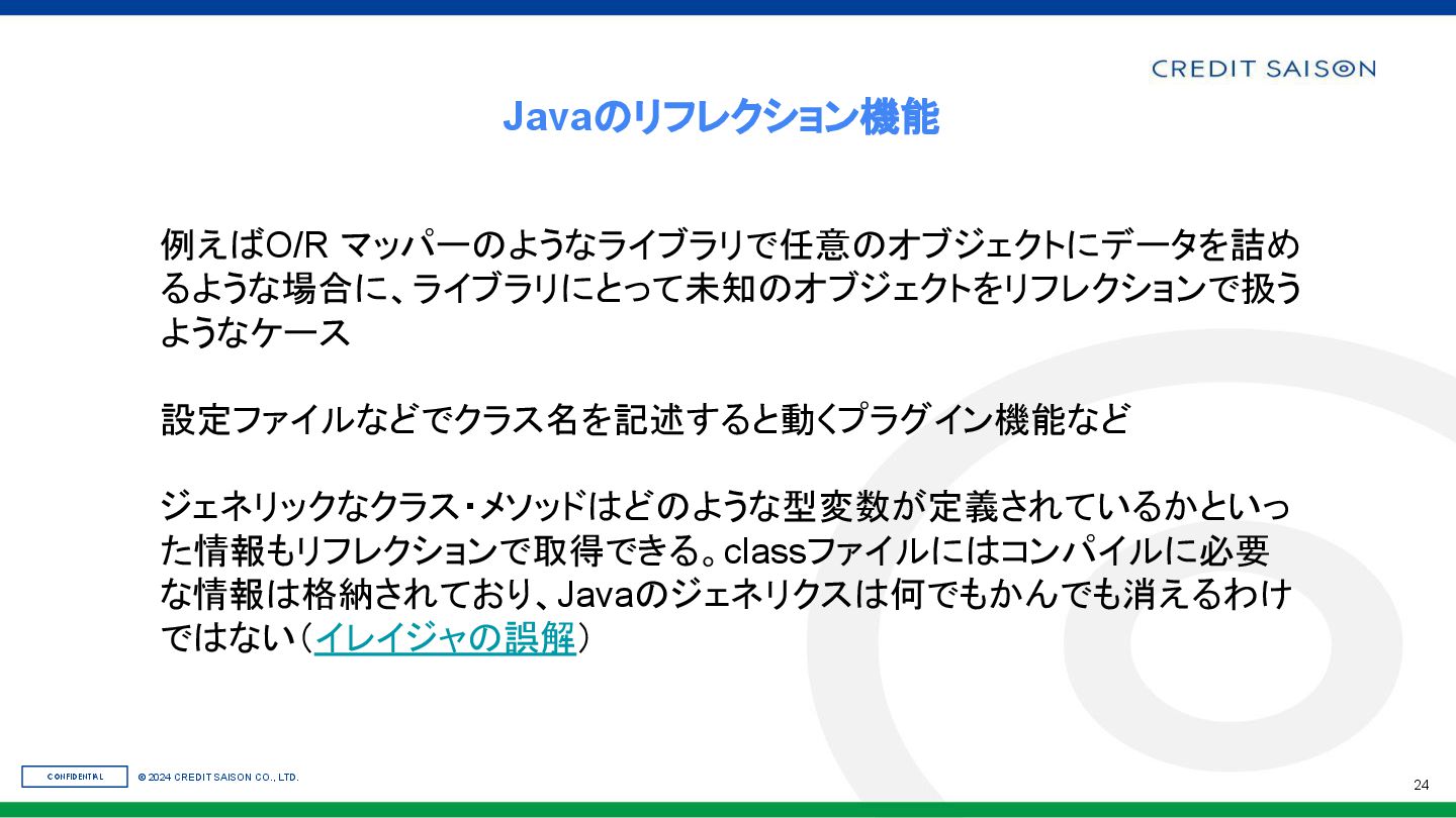 24. 24 © 2024 CREDIT SAISON CO., LTD. CONFIDENTIAL Javaのリフレクション機能 例えばO/R