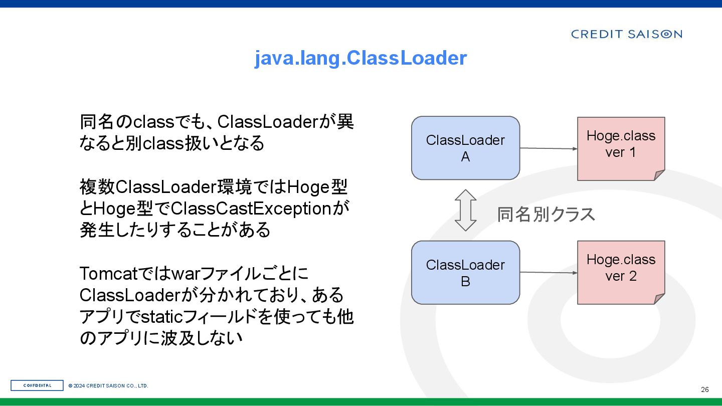 26. 26 © 2024 CREDIT SAISON CO., LTD. CONFIDENTIAL java.lang.ClassLoader 同名のclassでも、ClassLoaderが異