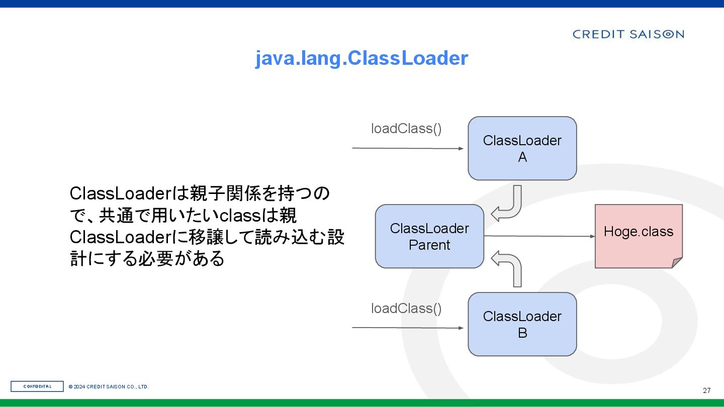 27. 27 © 2024 CREDIT SAISON CO., LTD. CONFIDENTIAL java.lang.ClassLoader ClassLoaderは親子関係を持つの