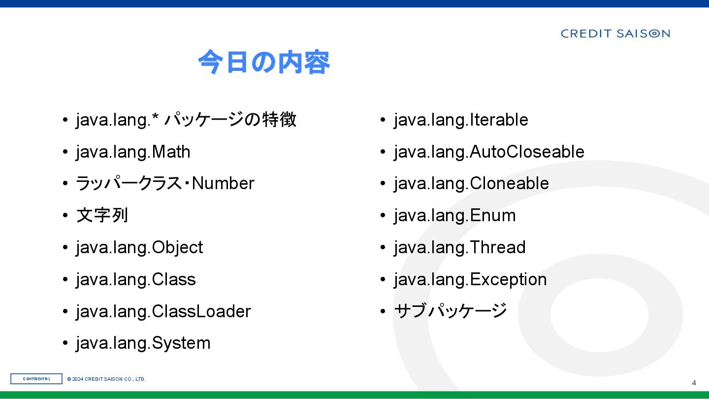 1. 1 © 2024 CREDIT SAISON CO., LTD. CONFIDENTIAL しっかり学ぶ java.lang.*