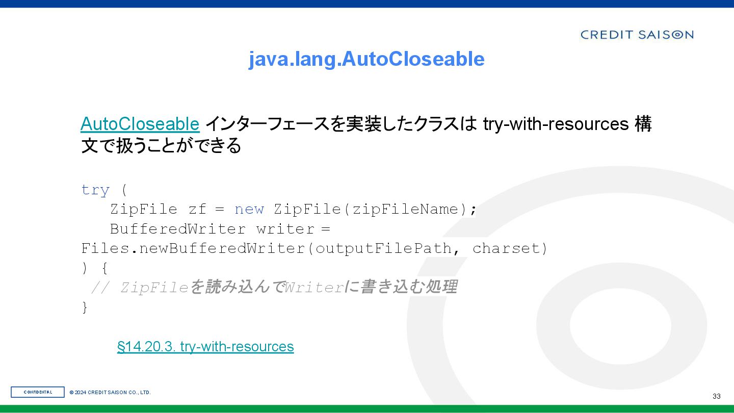 33. 33 © 2024 CREDIT SAISON CO., LTD. CONFIDENTIAL java.lang.AutoCloseable AutoCloseable