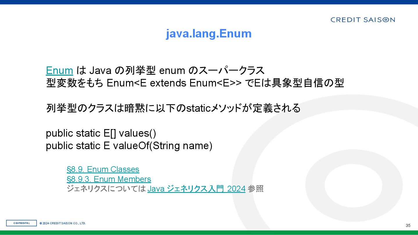 35. 35 © 2024 CREDIT SAISON CO., LTD. CONFIDENTIAL java.lang.Enum Enum