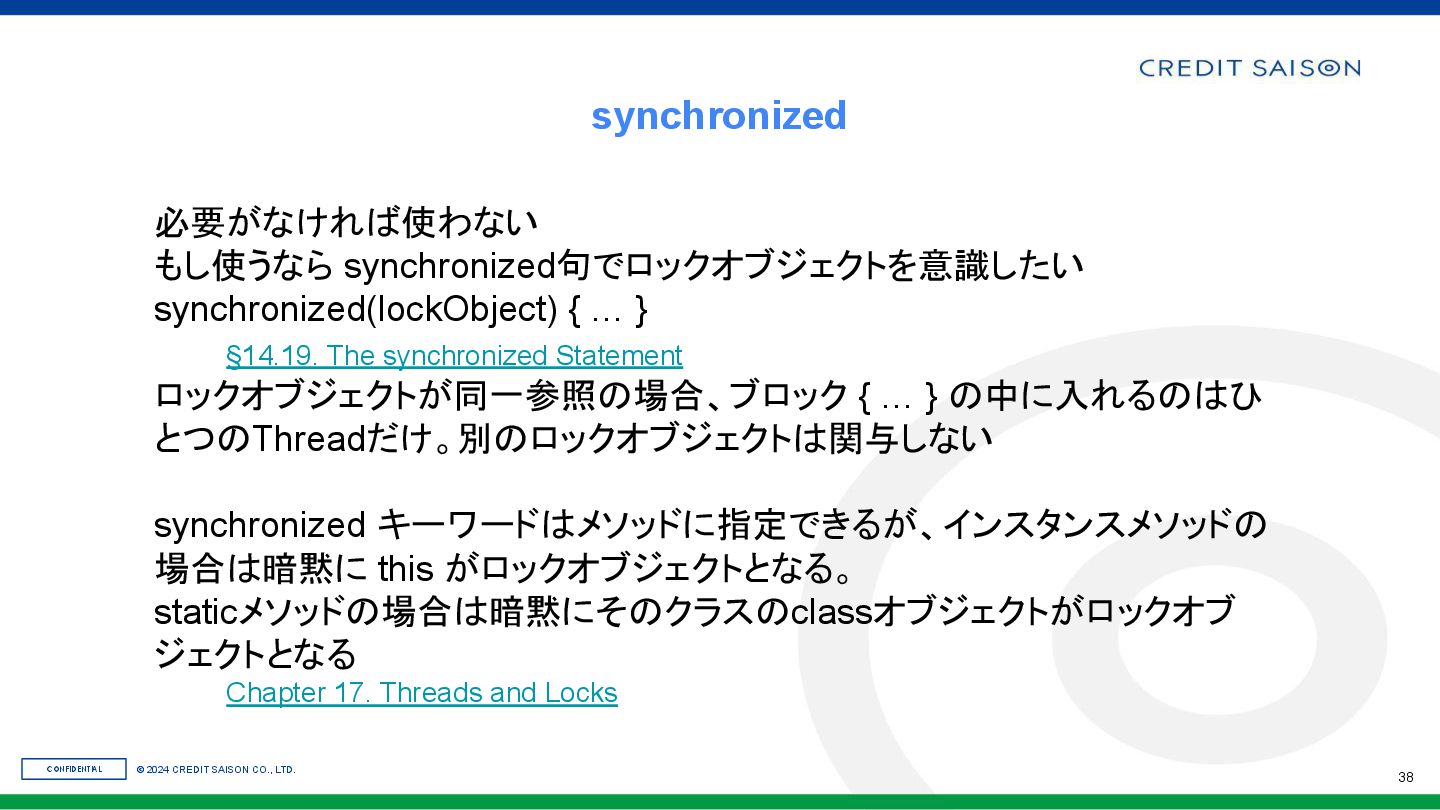 38. 38 © 2024 CREDIT SAISON CO., LTD. CONFIDENTIAL synchronized 必要がなければ使わない