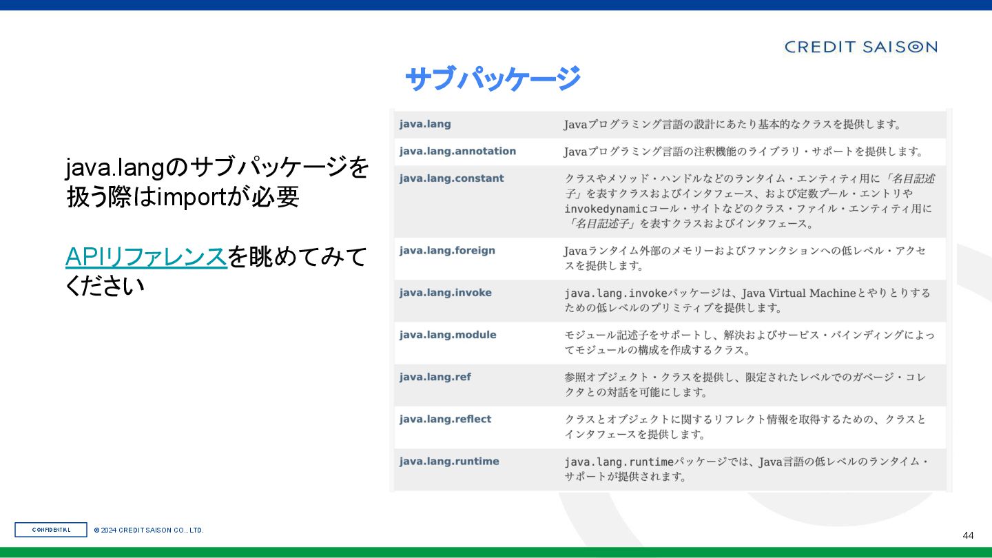 44. 44 © 2024 CREDIT SAISON CO., LTD. CONFIDENTIAL サブパッケージ java.langのサブパッケージを