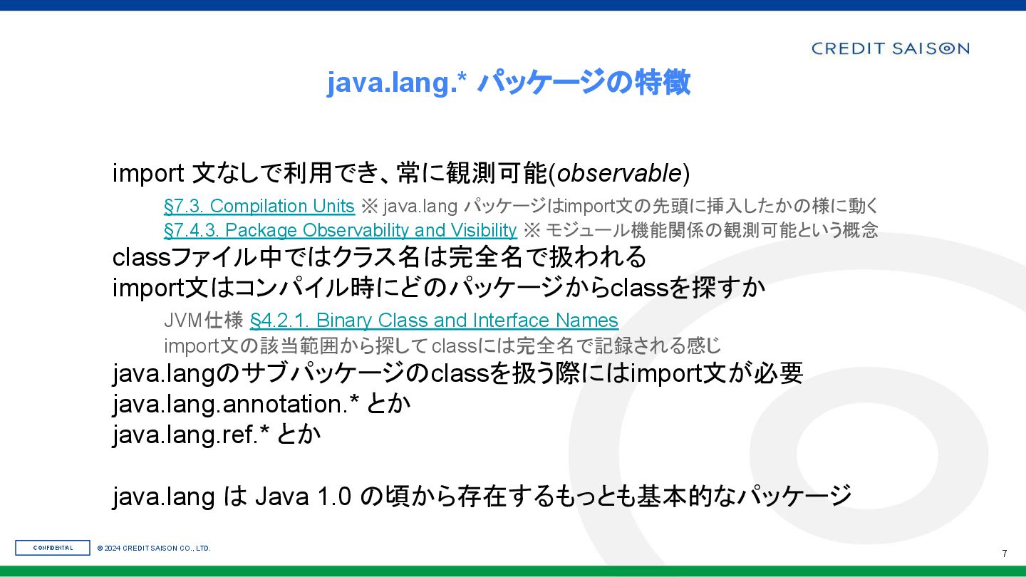 7. 7 © 2024 CREDIT SAISON CO., LTD. CONFIDENTIAL java.lang.* パッケージの特徴