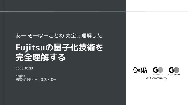 AI Community 2025.10.23 nagiss 株式会社ディー・エヌ・エー Fujitsuの量子化技術を 完全理解する あー そーゆーことね 完全に理解した