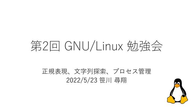第2回 GNU/Linux 勉強会 正規表現、⽂字列探索、プロセス管理 2022/5/23 笹川 尋翔