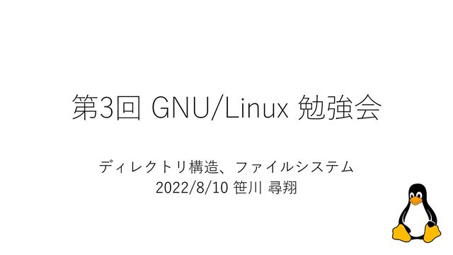 第3回 GNU/Linux 勉強会 ディレクトリ構造、ファイルシステム 2022/8/10 笹川 尋翔