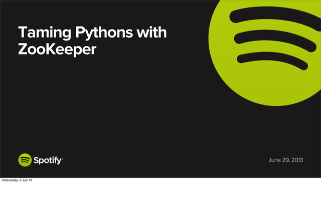 You’ll see how to do things in ZooKeeper and how to implement them using Kazoo. We’ll also peek in to the recipes Kazoo offers, and if we have enough time, touch a real life application we’ve used Kazoo and ZooKeeper to build at Spotify.
