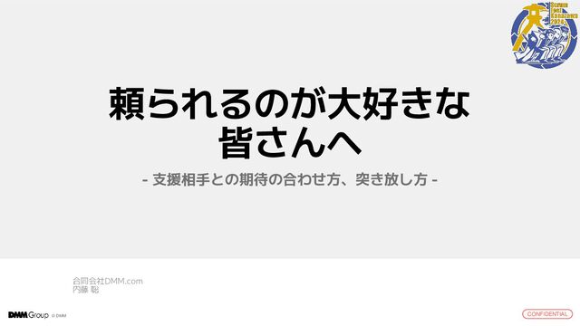 © DMM © DMM CONFIDENTIAL 頼られるのが大好きな 皆さんへ - 支援相手との期待の合わせ方、突き放し方 -