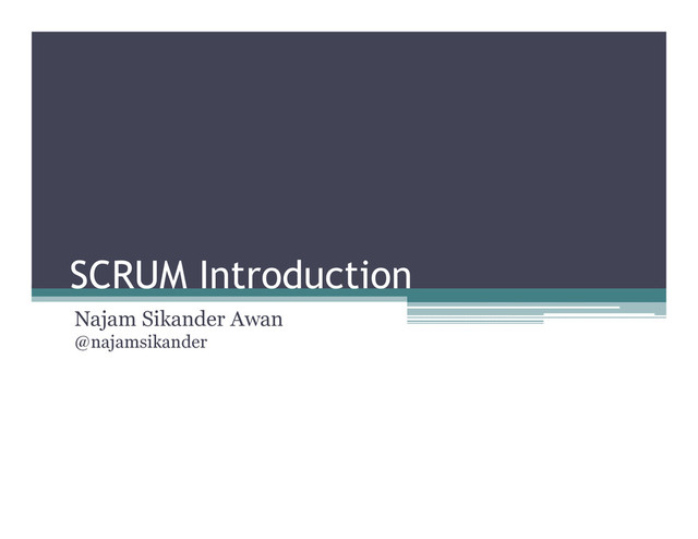 makes decision, solved their own problems, mange themselves. • Time waits for no man ▫ Duration of sprint is fixed, add to scope if you take out something. Reduce scope to if you are going to miss deadline. • Done means done ▫ Complete one feature at a time before moving to next ▫ Its better to have 100% of something over 90% of everything • Testing is integrated throughout the lifecycle ▫ Writing unit test before writing code. ▫ Testing each feature