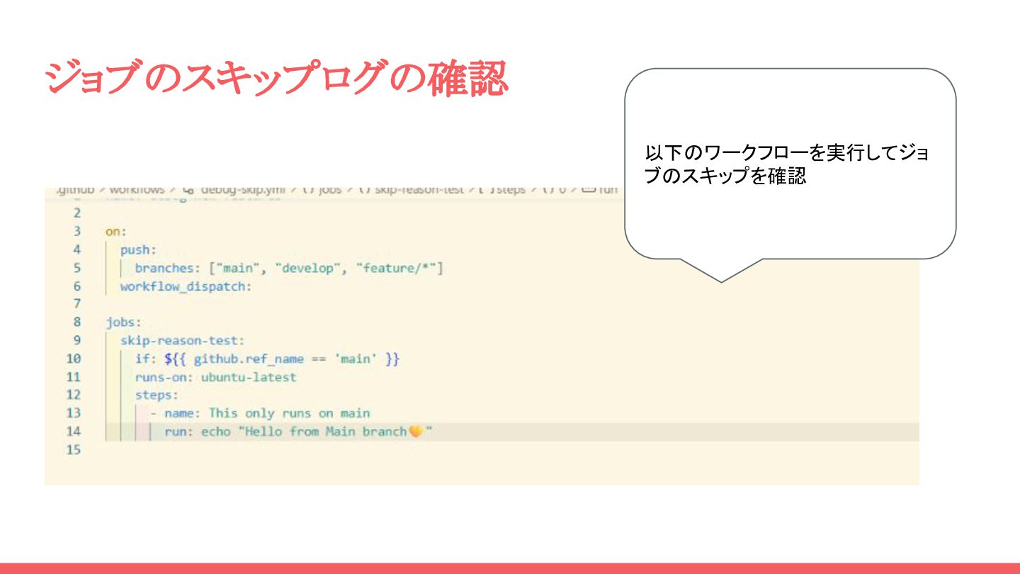 ジョブのスキップログの確認 以下のワークフローを実行してジョ ブのスキップを確認