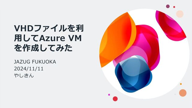 VHDファイルを利 用してAzure VM を作成してみた JAZUG FUKUOKA 2024/11/11 やしきん