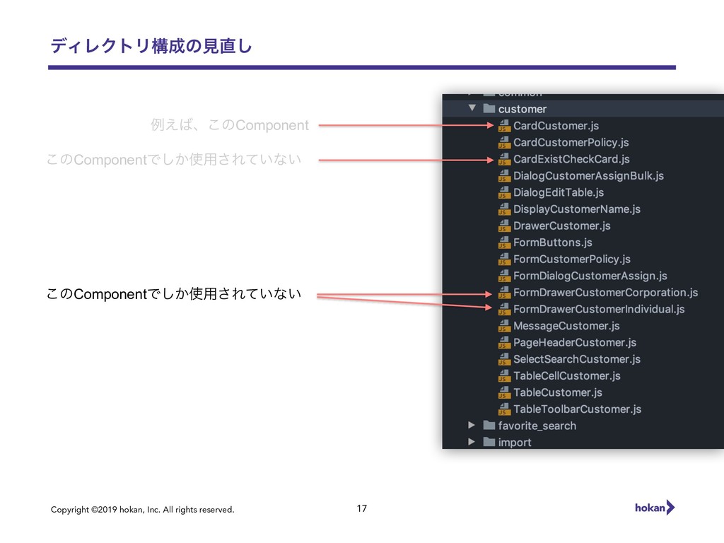 Copyright ©2019 hokan, Inc. All rights reserved. σΟϨΫτϦߏͷݟ͠ 16 ྫ͑ɺ͜ͷComponent