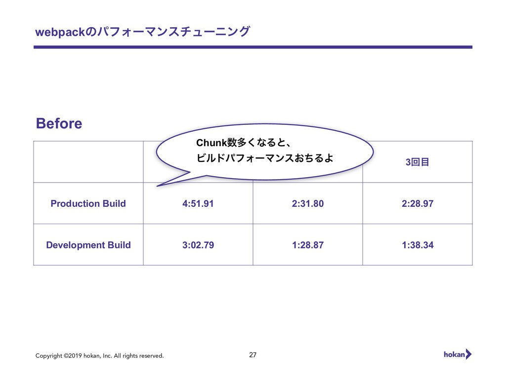 Copyright ©2019 hokan, Inc. All rights reserved. webpackͷύϑΥʔϚϯενϡʔχϯά 27 1ճ