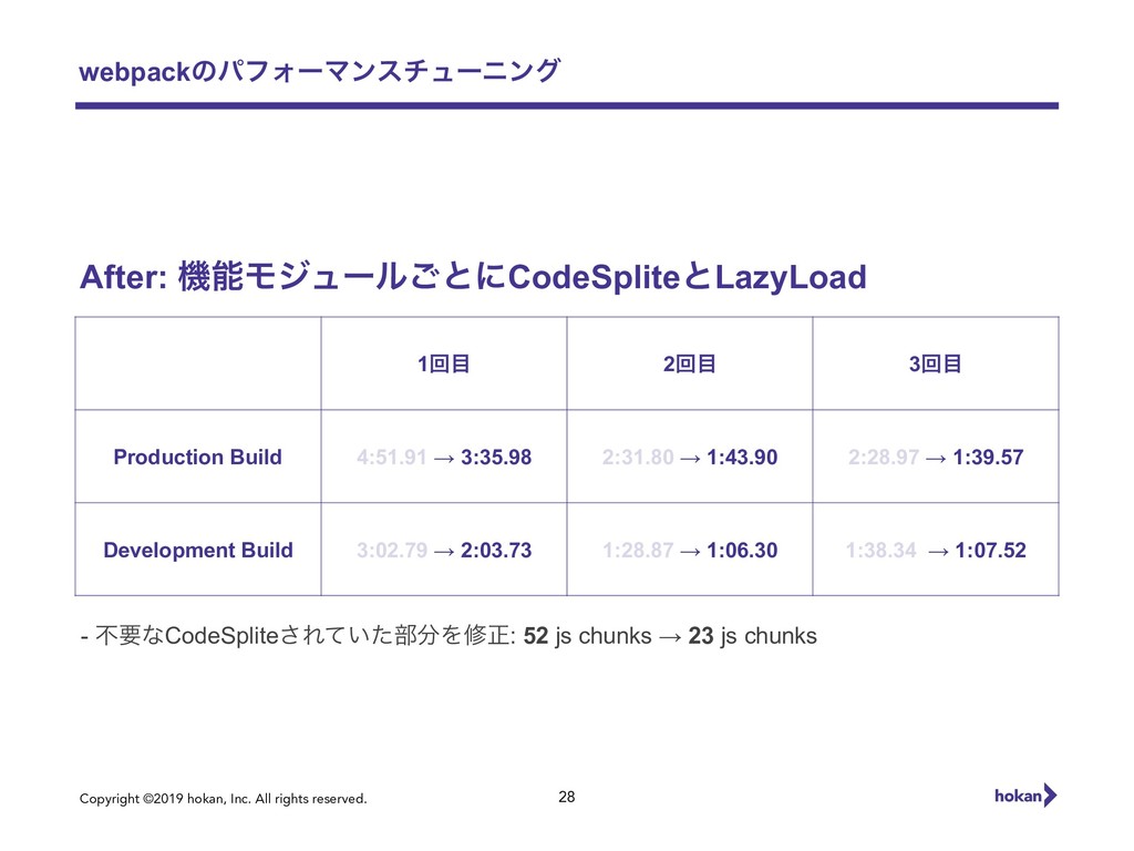 Copyright ©2019 hokan, Inc. All rights reserved. webpackͷύϑΥʔϚϯενϡʔχϯά 28 1ճ
