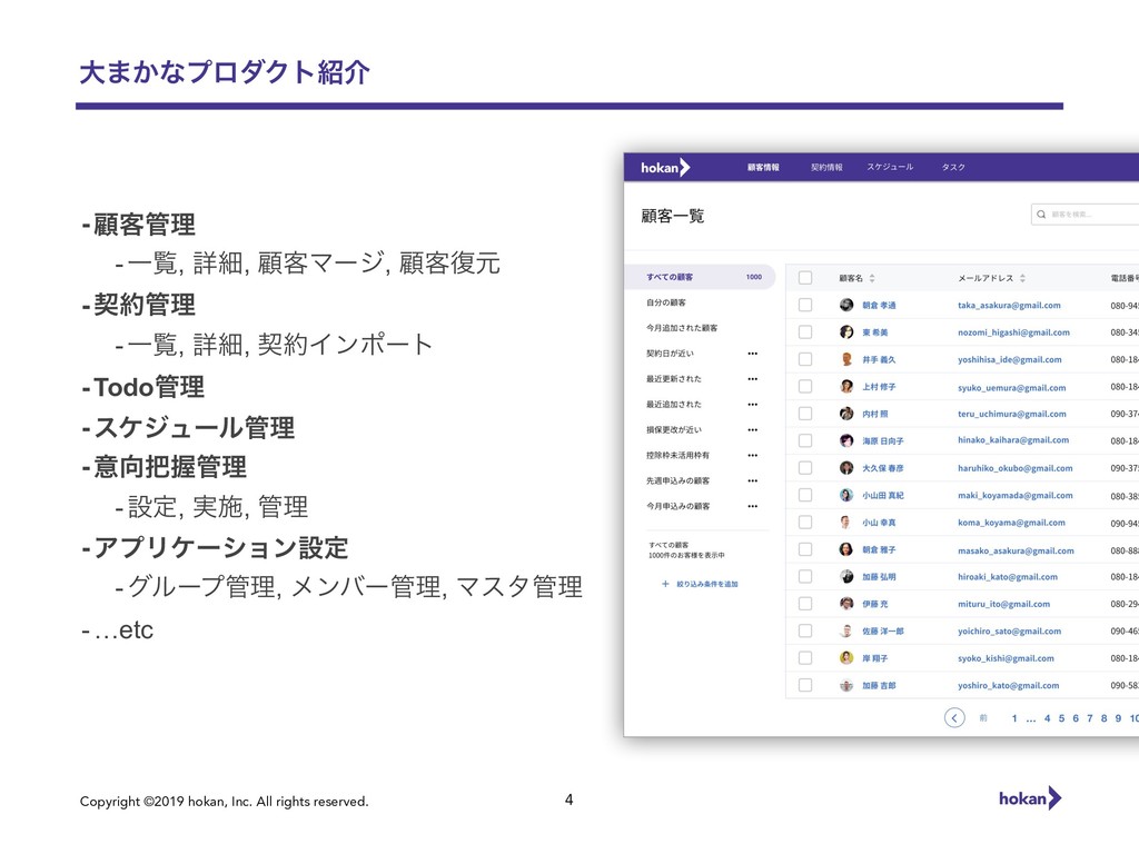 Copyright ©2019 hokan, Inc. All rights reserved. େ·͔ͳϓϩμΫτհ 4 -ސ٬ཧ