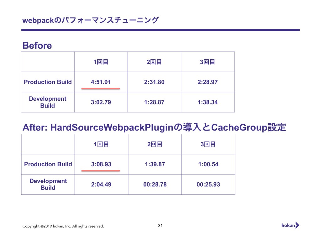 Copyright ©2019 hokan, Inc. All rights reserved. webpackͷύϑΥʔϚϯενϡʔχϯά 31 1ճ