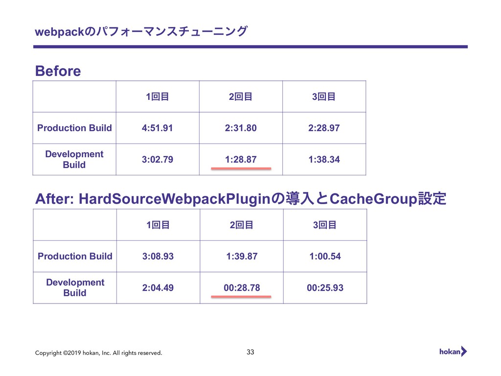 Copyright ©2019 hokan, Inc. All rights reserved. webpackͷύϑΥʔϚϯενϡʔχϯά 33 1ճ