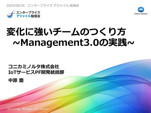 in a system without a central authority or external element imposing it through planning.” 自己組織化とは? 自己組織化とは、中央の権威や外部の要素が計画 を通して押し付けることなく、システムに構造や パターンが現れるプロセスである 出典 書籍「Management 3.0」, ヨーガン アペロ(Jurgen Appelo)著 https://www.amazon.co.jp/dp/0321712471