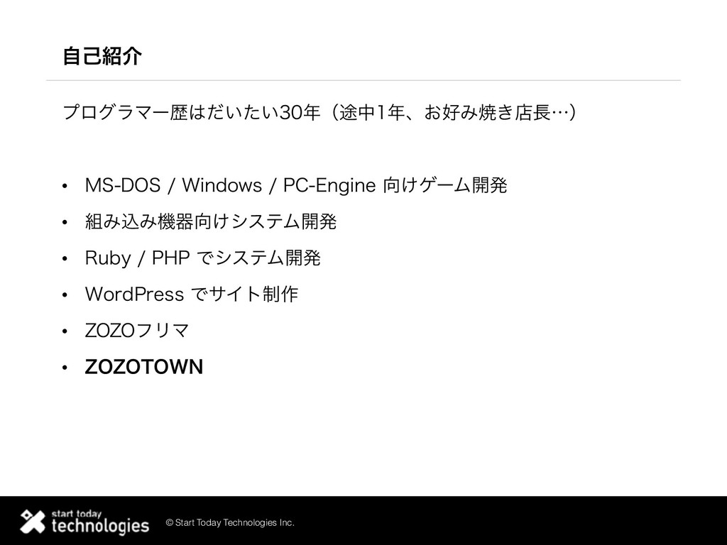 © Start Today Technologies Inc. ࣗݾհ ϓϩάϥϚʔྺ͍͍ͩͨʢ్தɺ͓Έম͖ళʜʣ • .4%048JOEPXT1$&OHJOF͚ήʔϜ։ൃ •