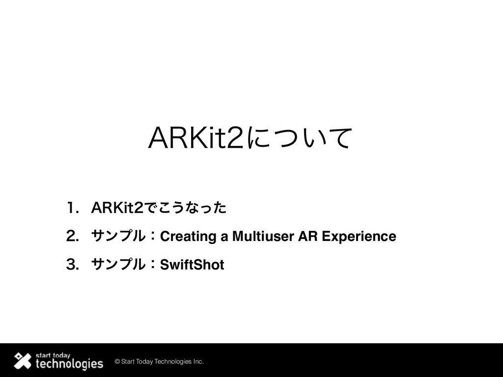 © Start Today Technologies Inc. αϯϓϧɿ4XJGU4IPU • "3ۭؒڞ༗ΛͬͨରઓήʔϜ https://developer.apple.com/documentation/arkit/swiftshot_creating_a_game_for_augmented_reality