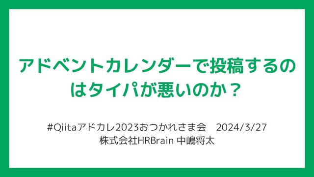 アドベントカレンダーで投稿するの はタイパが悪いのか? #Qiitaアドカレ2023おつかれさま会 2024/3/27 株式会社HRBrain 中嶋将太