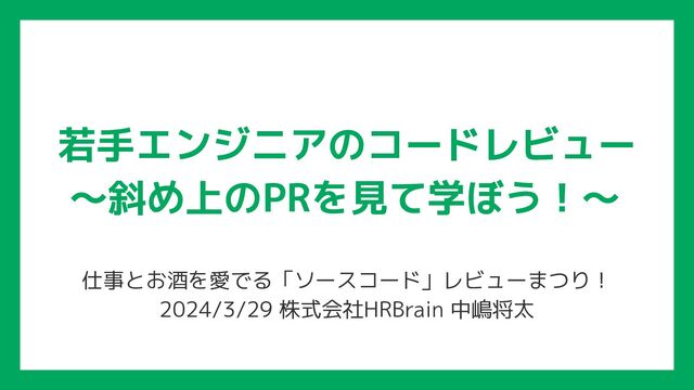 若手エンジニアのコードレビュー 〜斜め上のPRを見て学ぼう!〜 仕事とお酒を愛でる「ソースコード」レビューまつり! 2024/3/29 株式会社HRBrain 中嶋将太