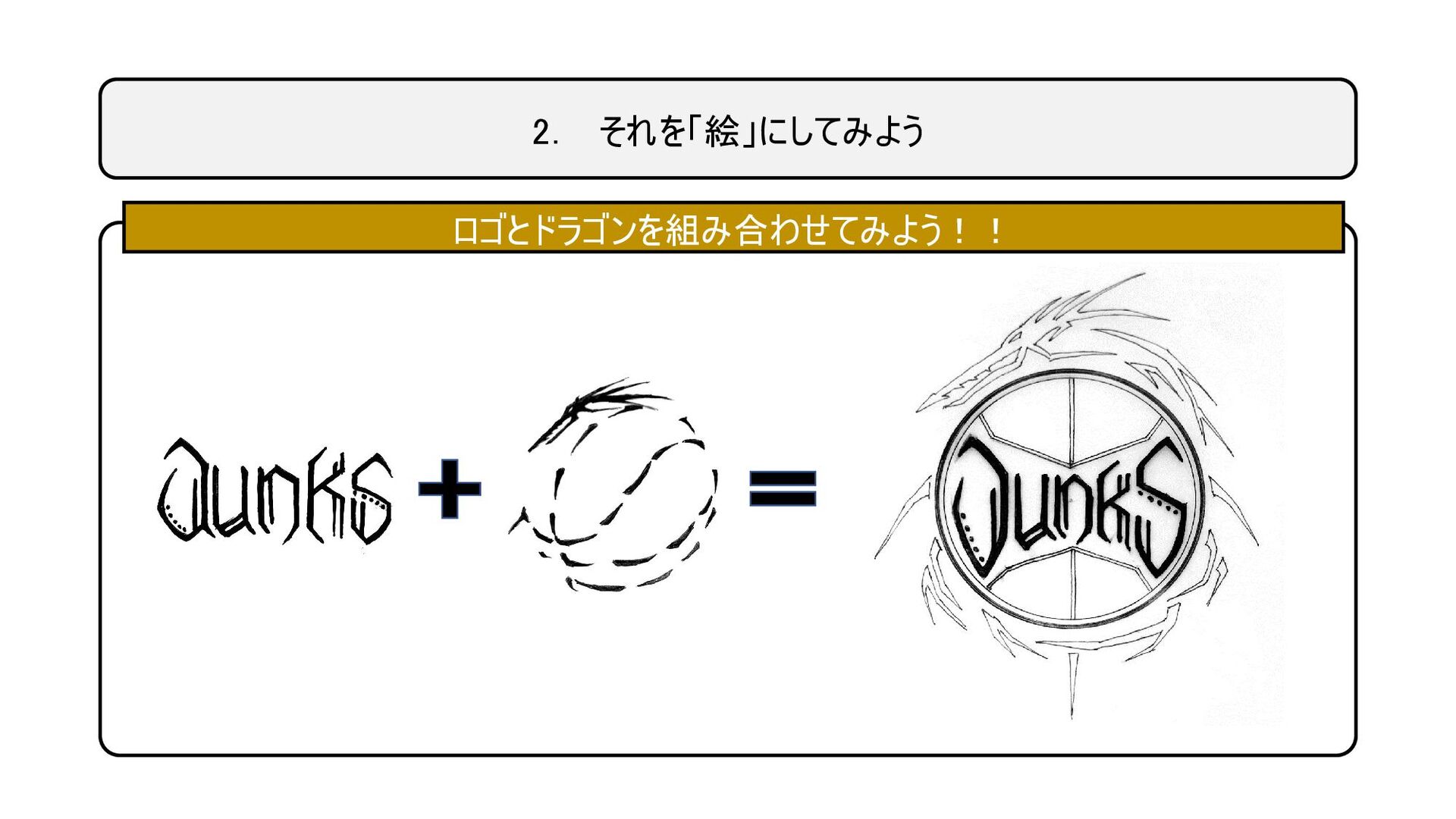 2. それを「絵」にしてみよう ロゴとドラゴンを組み合わせてみよう!!