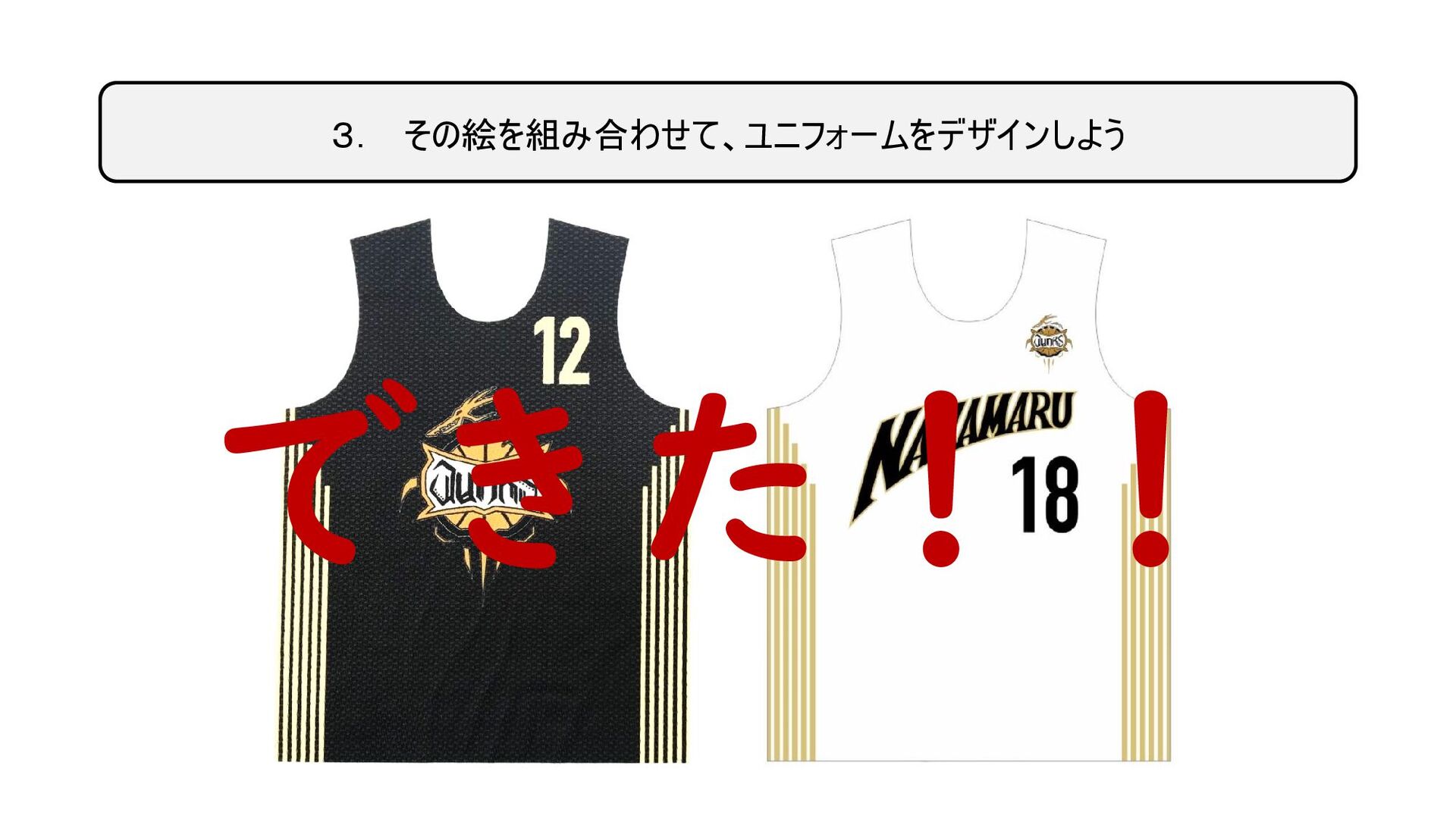 3. その絵を組み合わせて、ユニフォームをデザインしよう できた!!