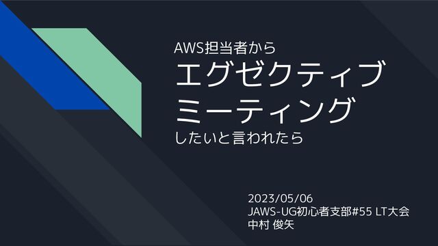 AWS担当者から エグゼクティブ ミーティング したいと言われたら 2023/05/06 JAWS-UG初心者支部#55 LT大会 中村 俊矢