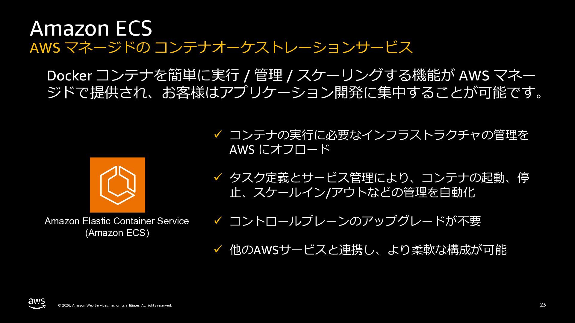 初学者向けセミナー「これから始める AWS のコンテナサービス活用」の資料です。