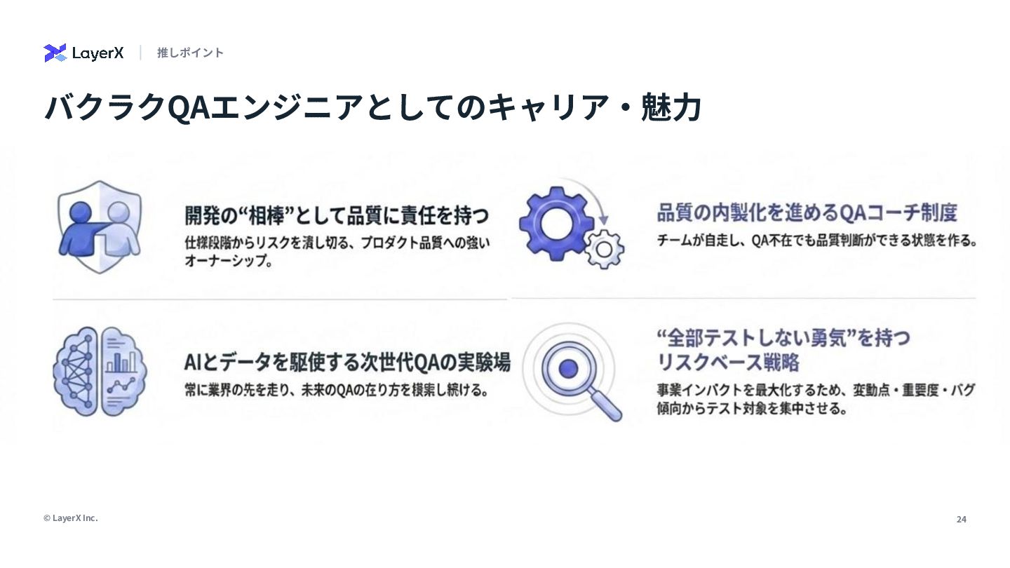 © LayerX Inc. 24 推しポイント バクラクQAエンジニアとしてのキャリア‧魅⼒