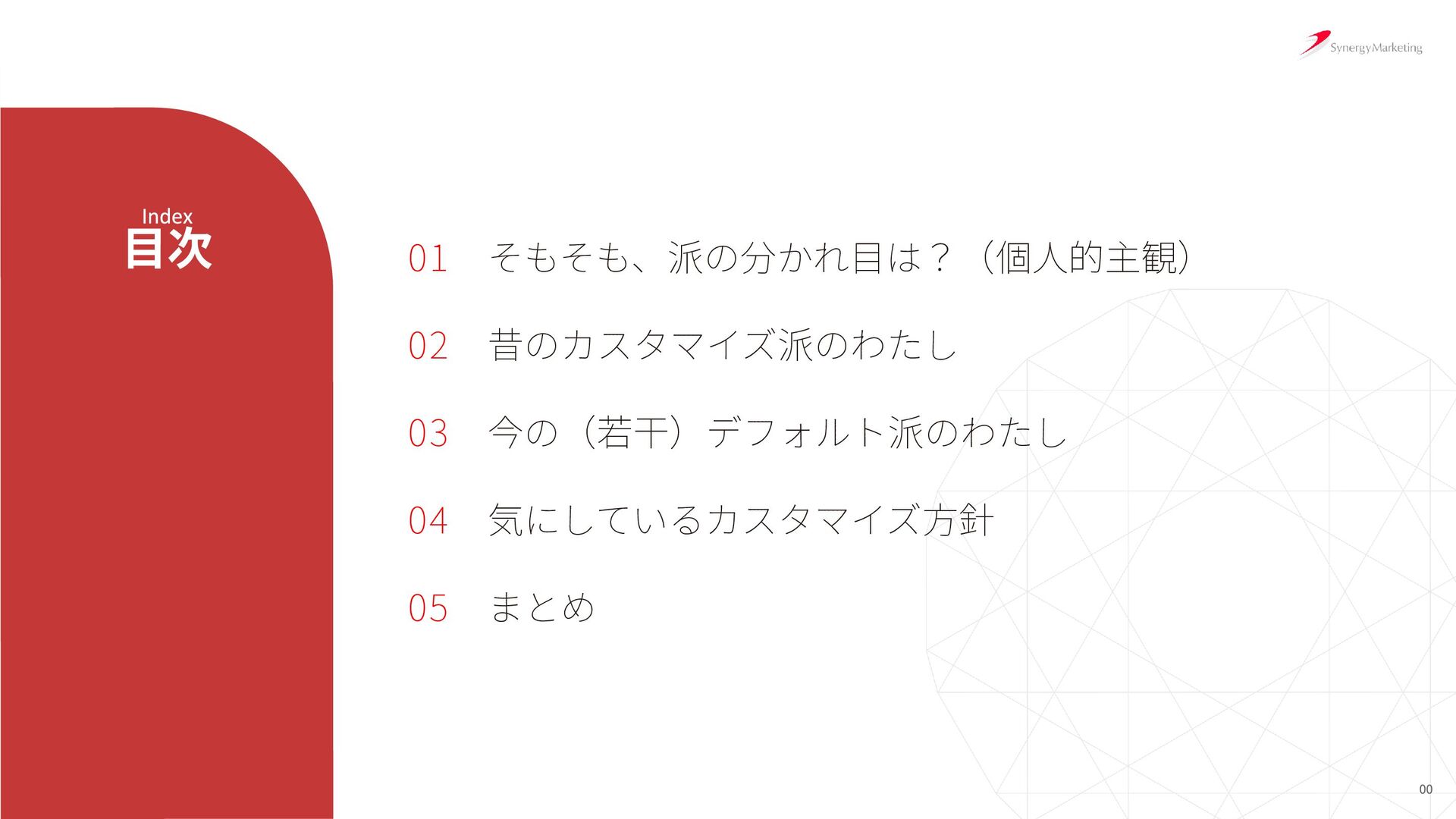 01 そもそも、派の分かれ目は?(個人的主観) 02 昔のカスタマイズ派のわたし 03 今の(若干)デフォルト派のわたし 04 気にしているカスタマイズ方針 05 まとめ