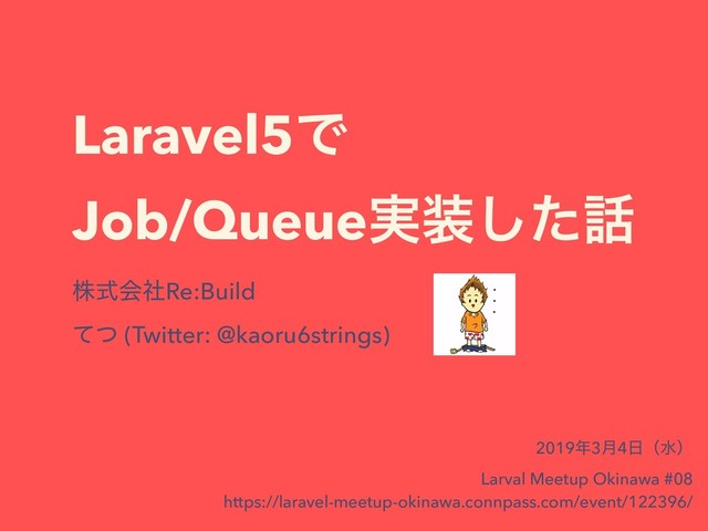 Laravel5Ͱ Job/Queue࣮ͨ͠ גࣜձࣾRe:Build ͯͭ (Twitter: @kaoru6strings) 20193݄4ʢਫʣ Larval Meetup Okinawa