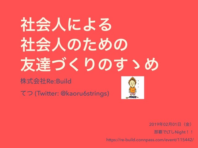 ࣾձਓʹΑΔ ࣾձਓͷͨΊͷ ༑ୡͮ͘Γͷ͢ʍΊ גࣜձࣾRe:Build ͯͭ (Twitter: @kaoru6strings) 201902݄01ʢۚʣ ಹͰLT͠Nightʂʂ https://re-build.connpass.com/event/115442/