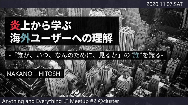 2020.11.07.SAT NAKANO HITOSHI Anything and Everything LT Meetup #2 @cluster