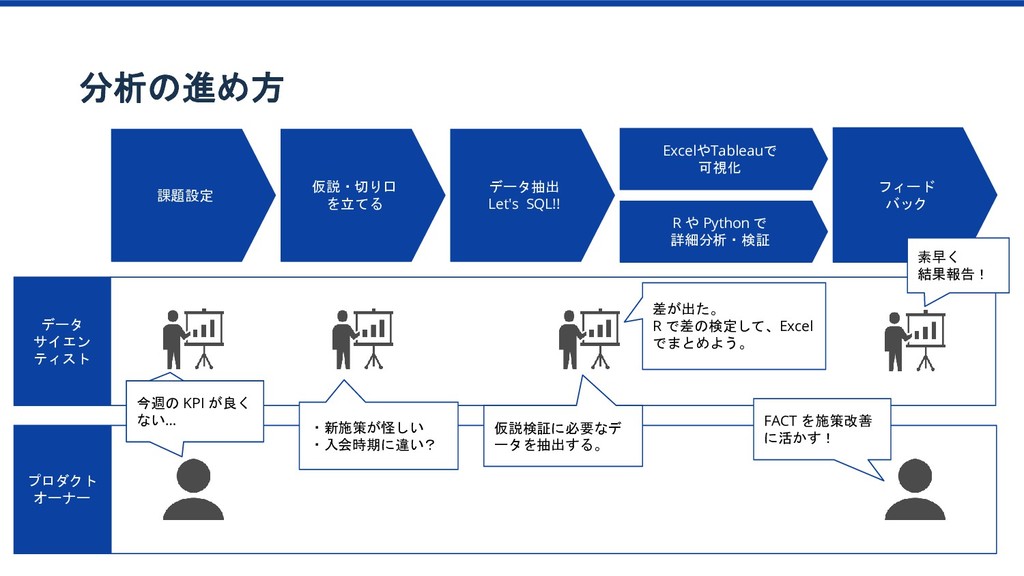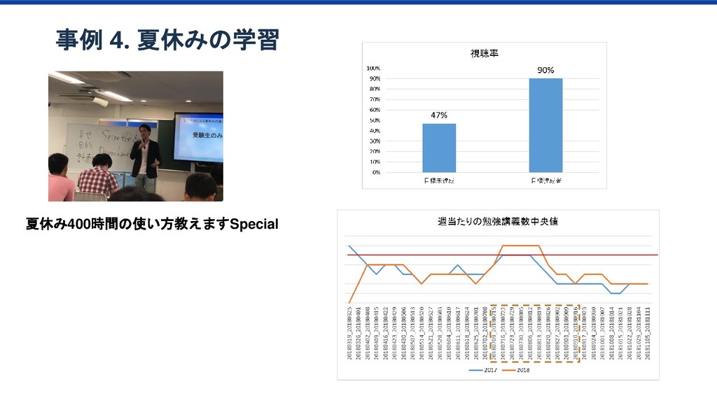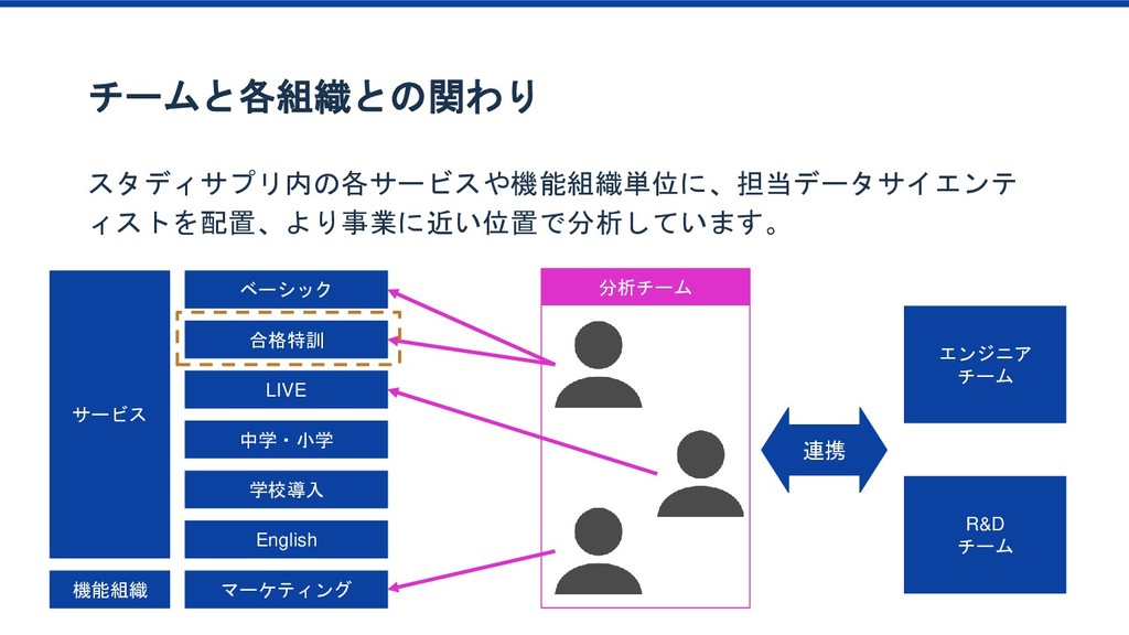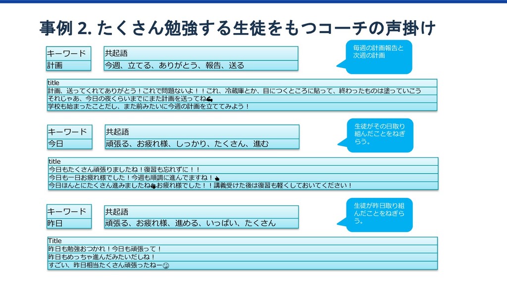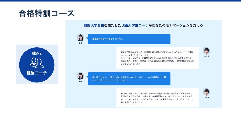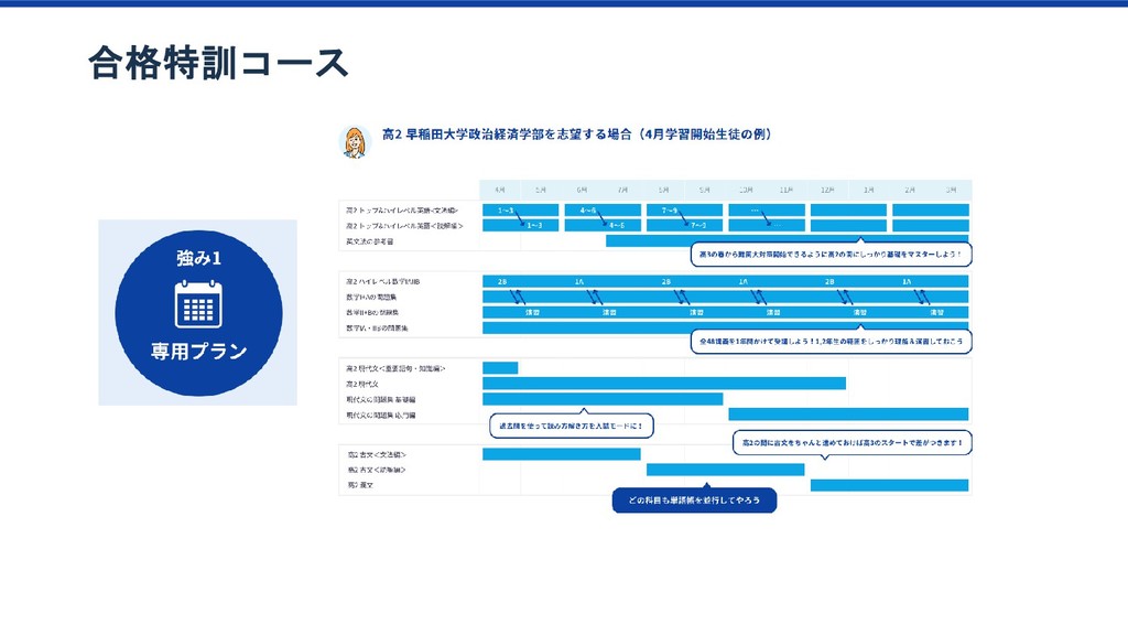 特訓プラン 傾向 1か月目の 動画視聴時間65分以上 ベーシック/特訓プラン 1か月目の 勉強日数15以上 ベーシック/特訓プラン 1か月目の テキスト購入金額YYY以上 ベーシック/特訓プラン 1か月目の テキスト購入金額XXX以上 ベーシック/特訓プラン 2か月目の 勉強科目数が4科目以上 ベーシック/特訓プラン ベーシック/特訓プラン 特訓プラン入会率2倍 該当者2.8% 特訓プラン入会率2.3倍 該当者10% 特訓プラン入会率4.2倍 該当者12% このセグメントに 特訓コースへの 入会を薦めてみよう プロダクトオーナー
