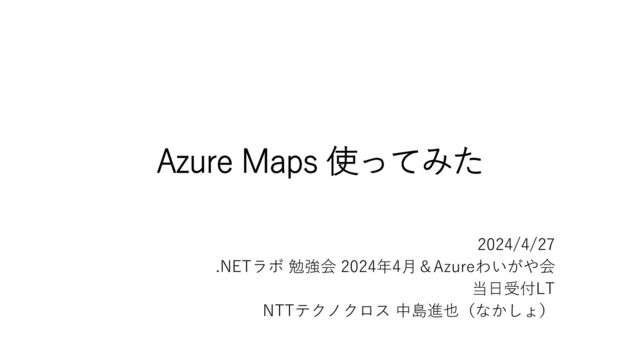 2024/04/27(土)に開催された .NETラボ 勉強会 2024年4月&Azureわいがや会( https://dotnetlab.connpass.com/event/314310/) に参加した時に当日受付LTで発表した資料です。 #dotnetlab #azuremaps