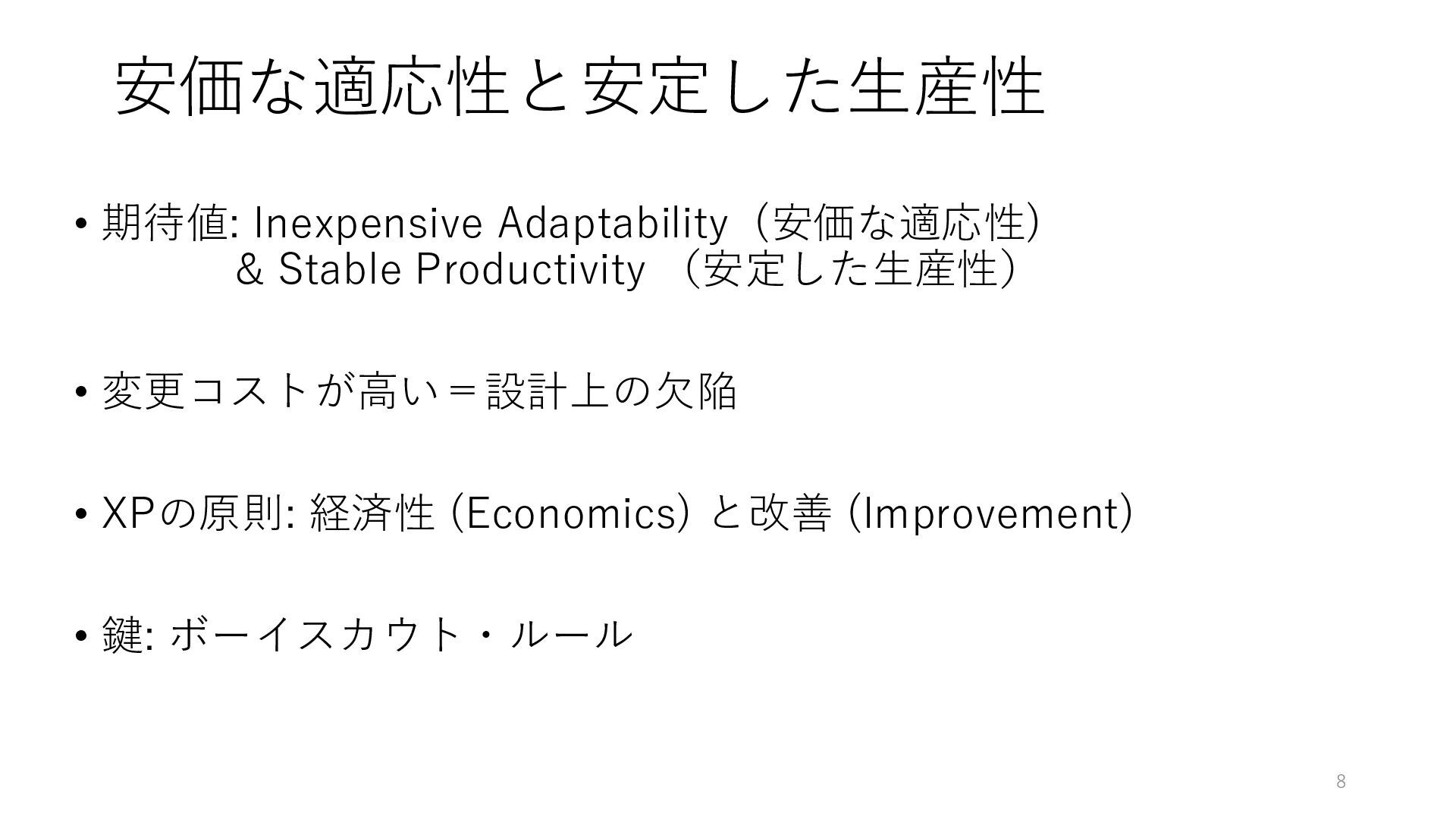 We Will Always Be Ready(常にデプロイ可能な状態を維持する) • Stable Productivity(安定した生産性) • Inexpensive Adaptability(安価な適応性) • Continuous Improvement(継続的な改善) • Fearless Competence(恐れを知らぬ能力) • Extreme Quality(徹底した品質志向) • We Will Always Be Ready(常にデプロイ可能な状態を維持する)
