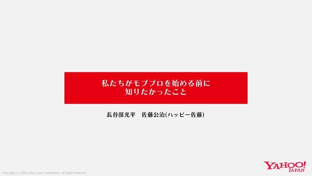 Copyright (C) 2020 Yahoo Japan Corporation. All Rights Reserved. ࢲ͕ͨͪϞϒϓϩΛ࢝ΊΔલʹ