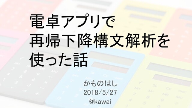 電卓アプリで 再帰下降構文解析を 使った話 かものはし 2018/5/27 @kawai