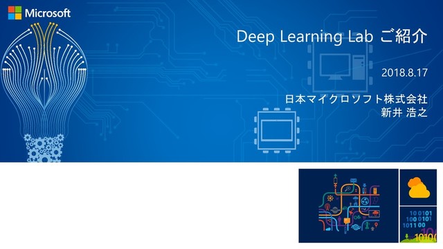 Deep Learning Lab ご紹介 2018.8.17 日本マイクロソフト株式会社 新井 浩之