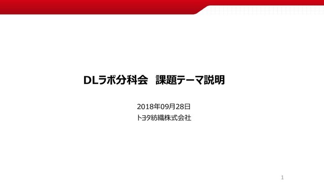 2-1.課題テーマ① DLラボ分科会 課題テーマ説明 2018年09月28日 トヨタ紡織株式会社 1