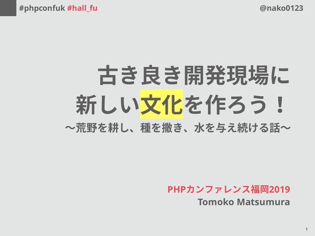 #phpconfuk #hall_fu @nako0123 まとめ ▶耕す・種を撒く・芽が出る - 現状の把握・整理 - セルフプロモーション -