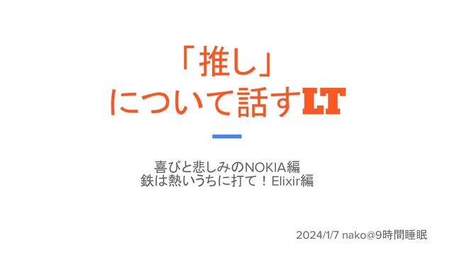 「推し」 について話すLT 喜びと悲しみのNOKIA編 鉄は熱いうちに打て!Elixir編 2024/1/7 nako@9時間睡眠