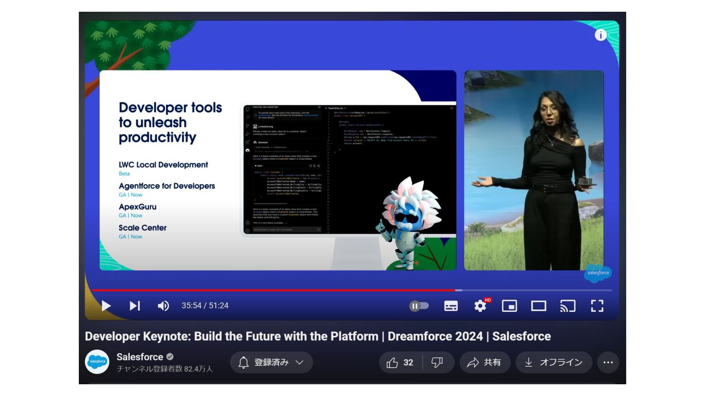 for Developers GA Now ApexGuru GA | Now Scale Center GA | Now To quickly learm more about this extension, visit the [email protected] Plese This isa Ask Eins 35:54/51:24 ur\Mapping/gии HD Developer Keynote: Build the Future with the Platform | Dreamforce 2024 | Salesforce Salesforce salesforce 登録済み チャンネル登録者数 82.4万人 32 共有 不 オフライン salesforce